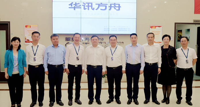 9月7日,廣東省委常委、深圳市委書記王偉中,深圳市委常委、秘書長高自民,深圳市副市長王立新,寶安區委書記姚任,寶安區區長郭子平等領導蒞臨華訊方舟集團調研指導,集團董事長吳光勝、聯席總裁劉東潭等領導予以熱情接待并作工作匯報。